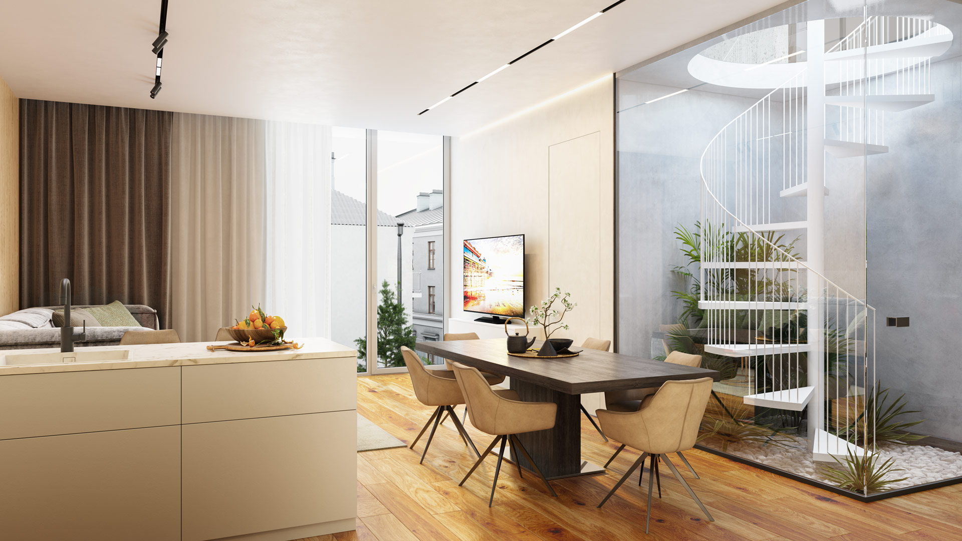 Auf 6 Geschossen entstehen 13 helle, sonnenorientierte Kleinwohnungen mit großzügigen Freiflächen in Form von Terrasse, Balkon oder ansprechend begrünter Hoffläche sowie einer wundervollen Dachterrasse, deren atemberaubende Aussicht ein Gefühl von Freiheit und Lebensfreude vermittelt. Die qualitativ hochwertig ausgestatteten Wohneinheiten bestechen ebenfalls durch ihre effiziente Raumaufteilung, die der Bezeichnung „kleines Raumwunder“ Nachdruck verleihen. In bekannt einzigartiger „Riegler & Partner Manier“ durchdacht und geplant bietet das Projekt „Lend-Living 3“ ein Zuhause der Superlative und verbindet gekonnt Lifestyle und Wohnen.