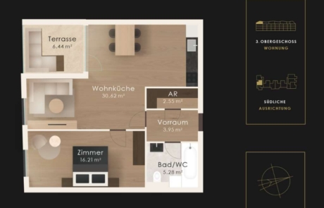 Auf die selbstverständlich hochwertige Ausführung und durchdachte Wohnraumplanung wird – wie bei sämtlichen Riegler & Partner Projekten – höchstes Augenmerk gelegt. Es versteht sich daher von selbst, dass sämtliche Materialien und Ausstattungsmerkmale sorgfältig ausgewählt werden. Alle Wohnungen sind mit Freiflächen ausgestattet, von welchen man in den idyllischen Innenhof sowie für einige Wohneinheiten auch auf das naheliegende Naturschutzgebiet und zum Hauptplatz blickt.