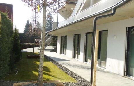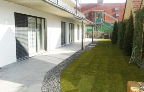 Vom Wohnbereich aus gelangt man direkt auf die 15,95 m² große Terrasse und weiter in den eigene Garten mit 21,33 m² – ideal für entspannte Stunden im Freien.