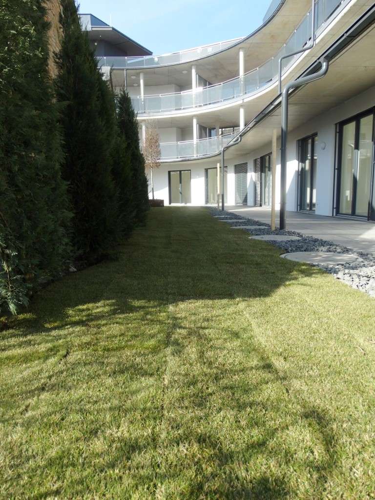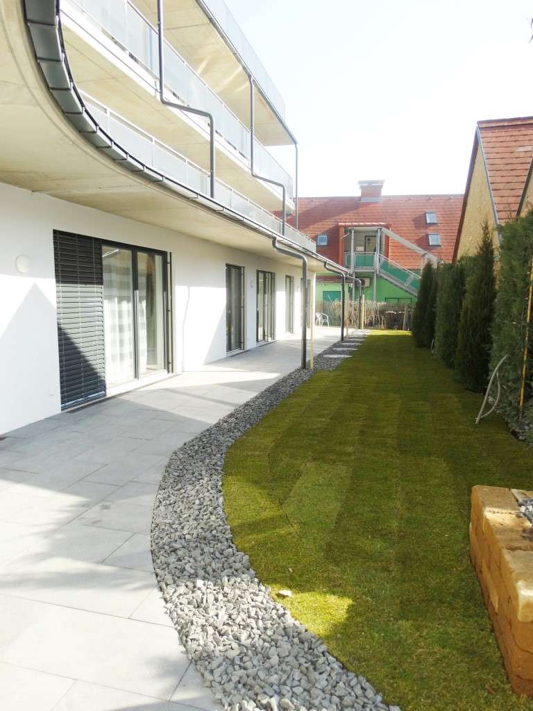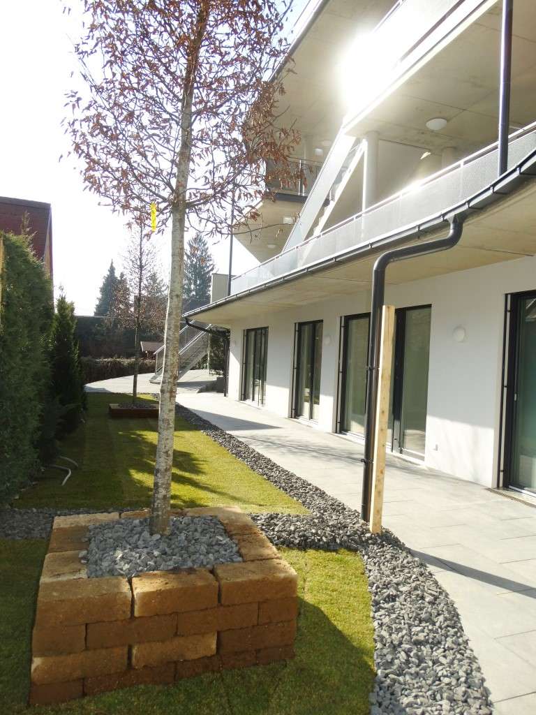 Vom Wohnbereich aus gelangt man direkt auf die 15,95 m² große Terrasse und weiter in den eigene Garten mit 21,33 m² – ideal für entspannte Stunden im Freien.